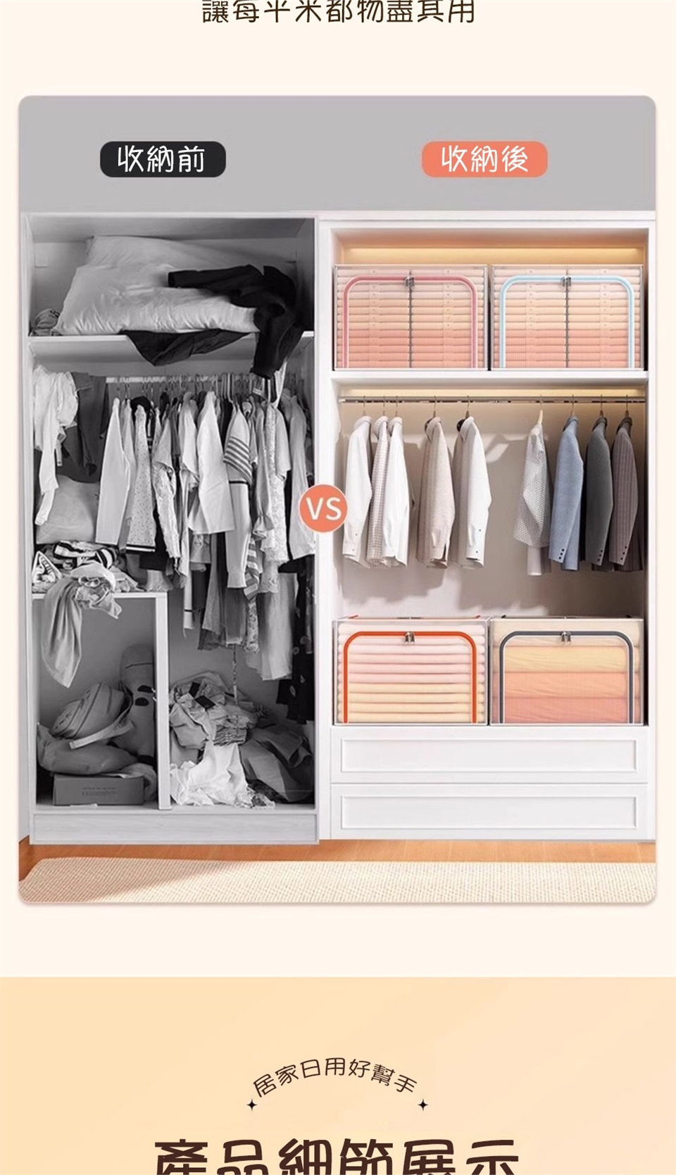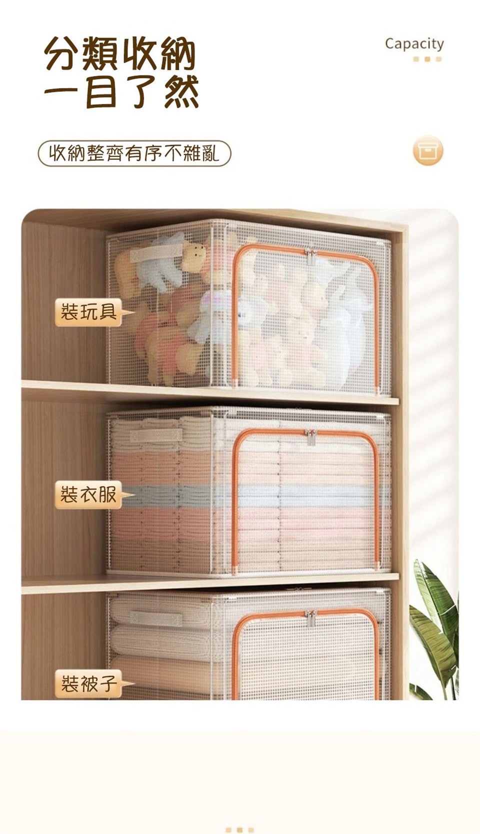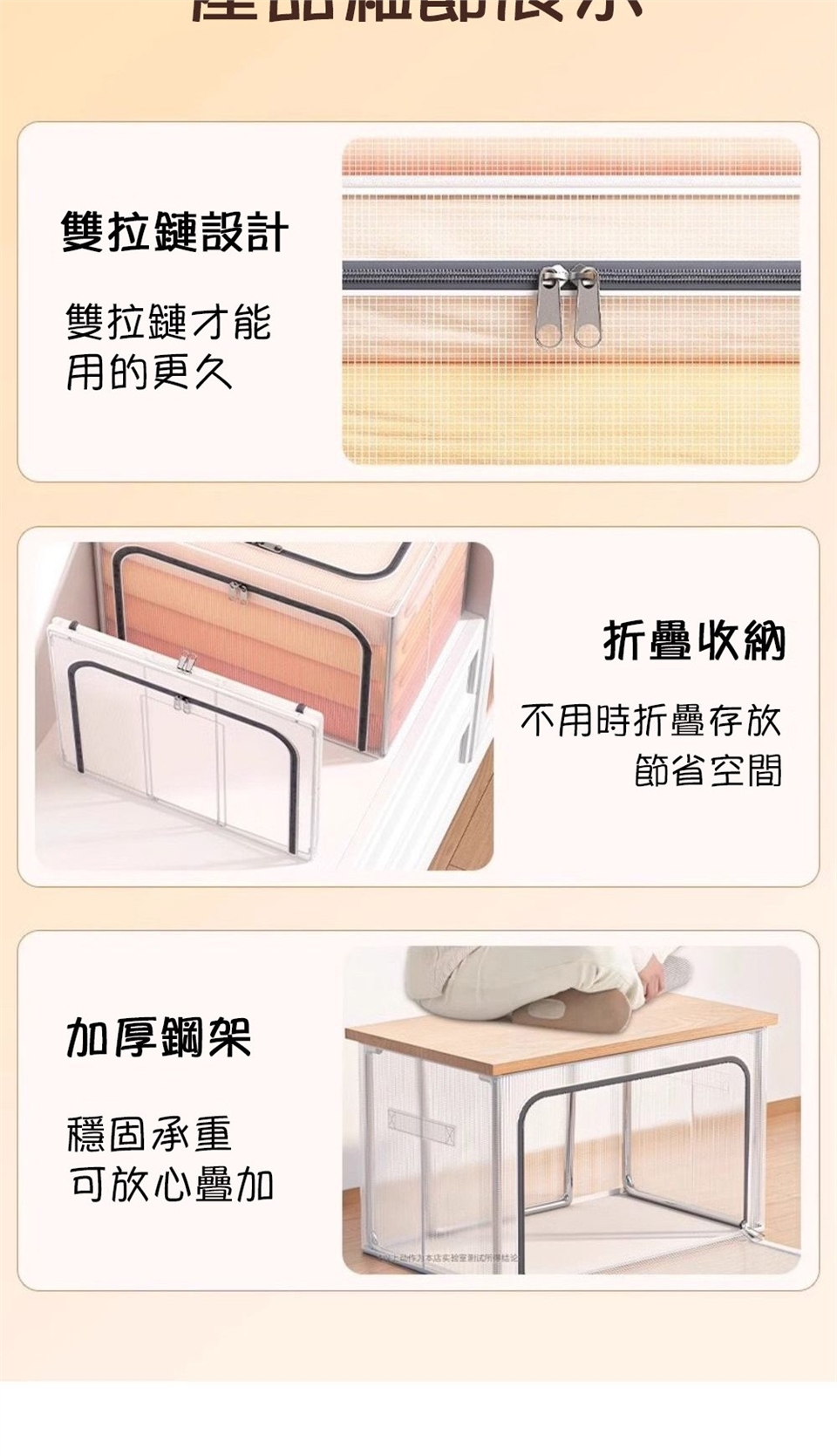 特色:可視收納 / 防塵防潮 / 高承重 / 可疊放 / 可折疊