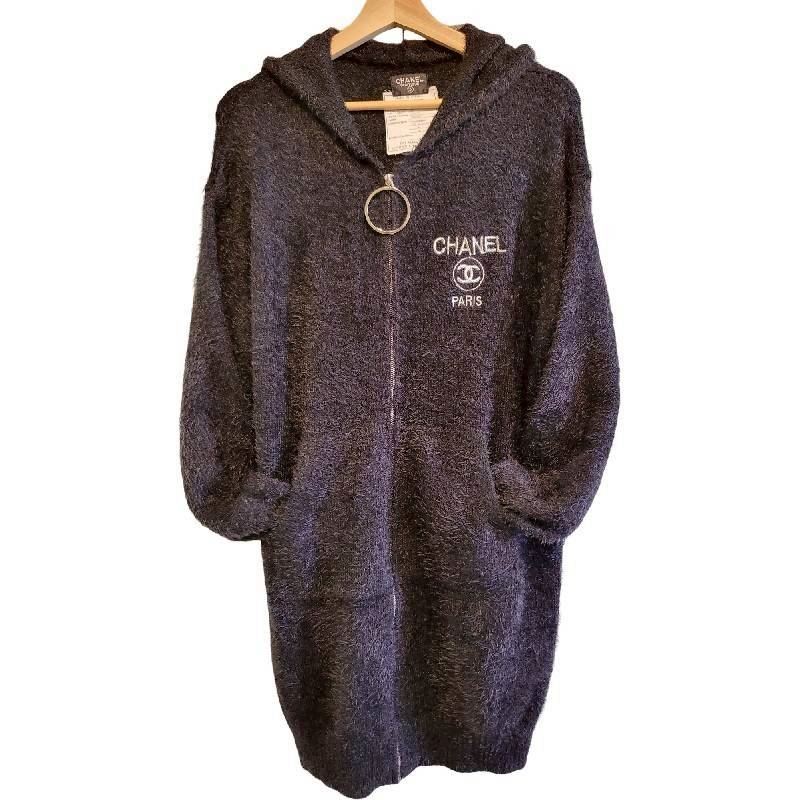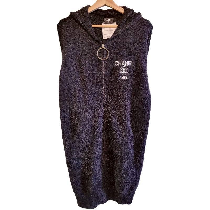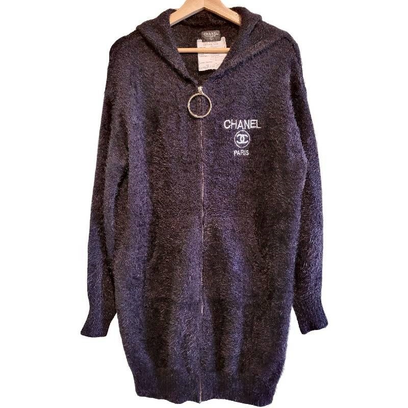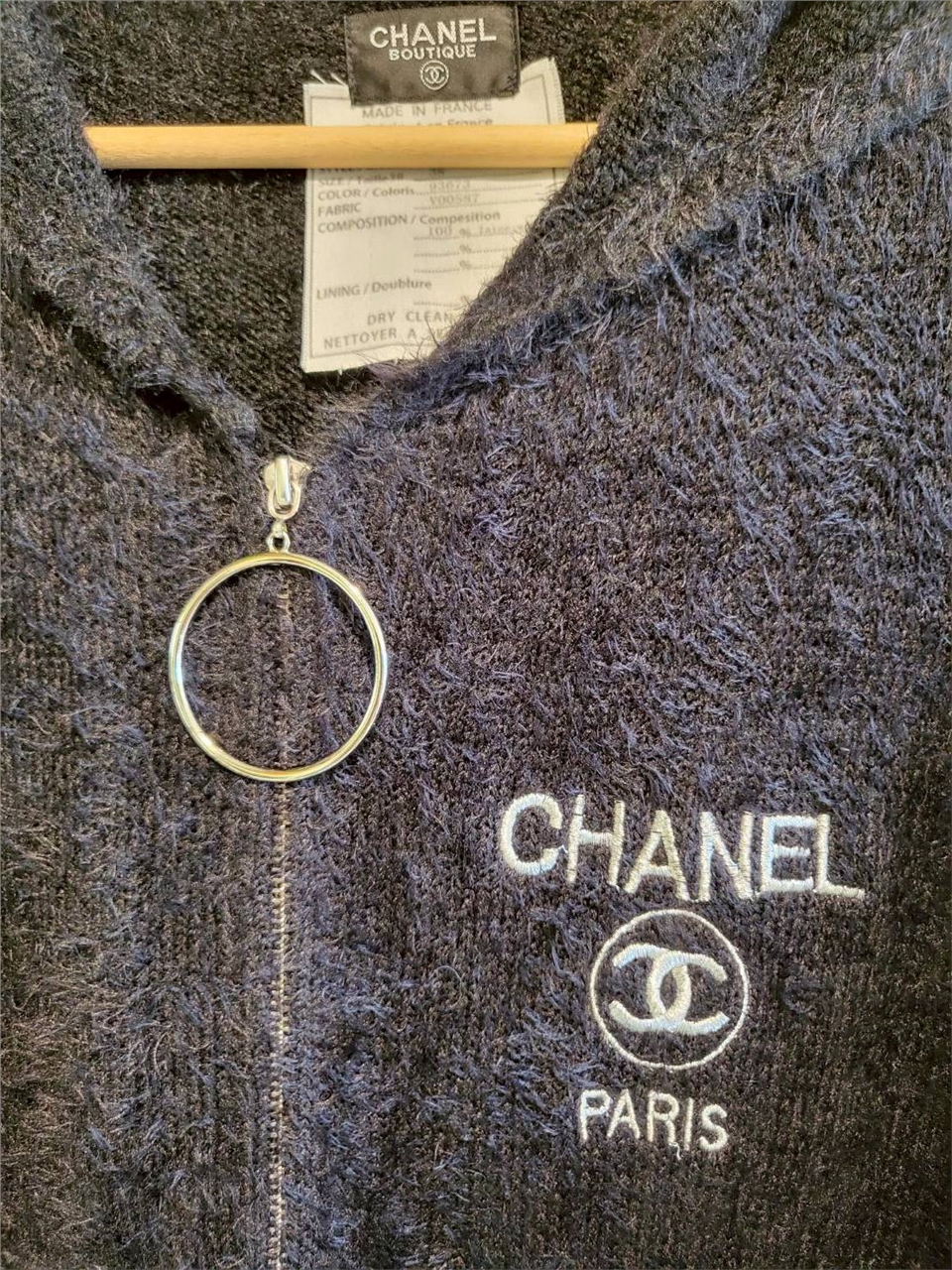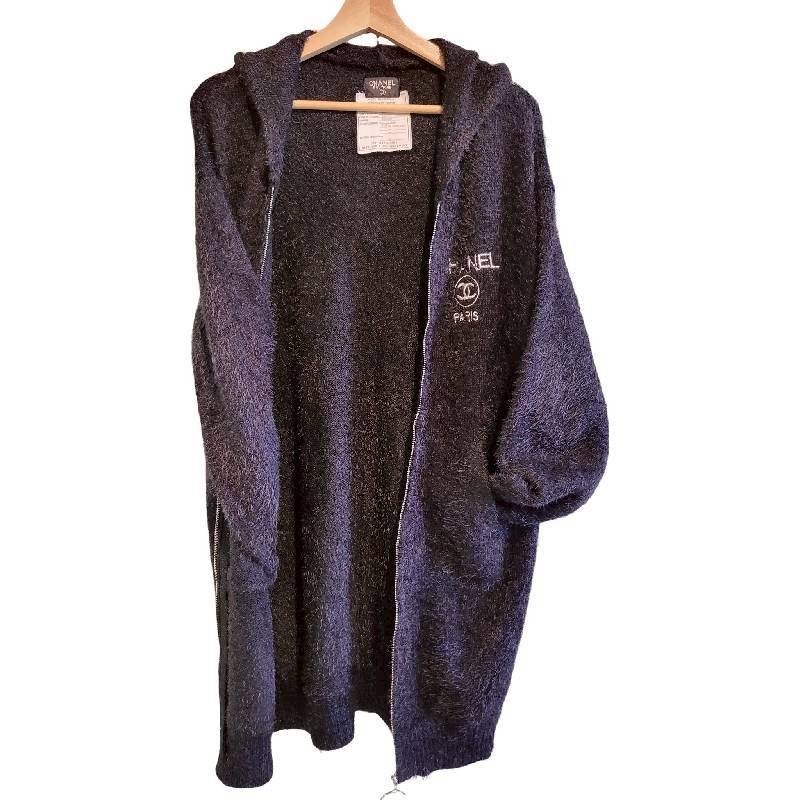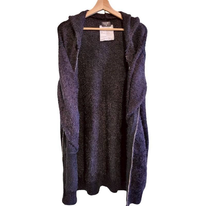 CHANEL 香奈兒連帽拉鍊針織外套|深藍色