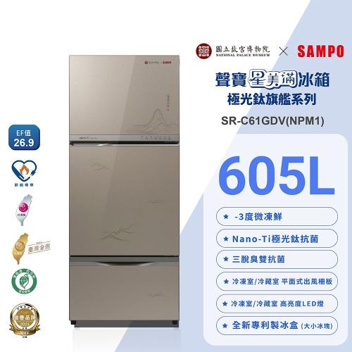 SAMPO聲寶 故宮聯名款605公升1級變頻星美滿玻璃三門冰箱-富春山居圖SR-C61GDV(NPM1)含基本安裝+舊機回收