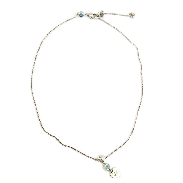 - 款式:刻字愛心與藍色寶石垂墜項鍊
