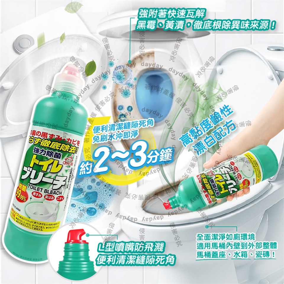 ●品名:AWAS免刷洗強力除黑霉黃漬馬桶漂白清潔劑
