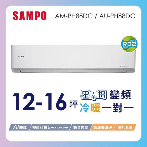 SAMPO聲寶 12-16坪星幸福一級變頻智慧聲控 AI智能冷暖冷氣空調AM-PH88DC/AU-PH88DC含基本安裝+舊機回收