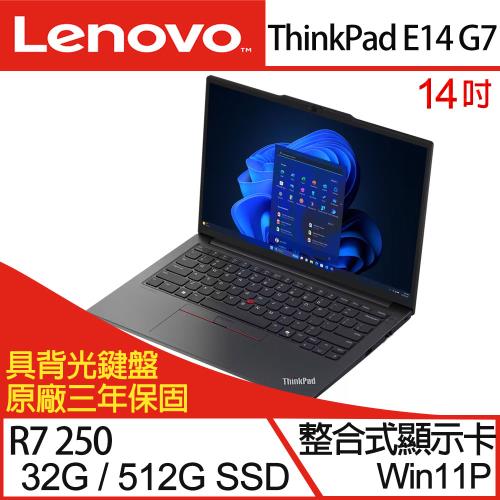 (規格升級)Lenovo聯想 ThinkPad E14 Gen 7 14吋商務筆電 R7 250/32G/PCIe 512G SSD/W11P 三年保