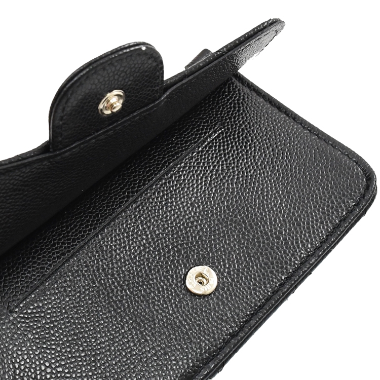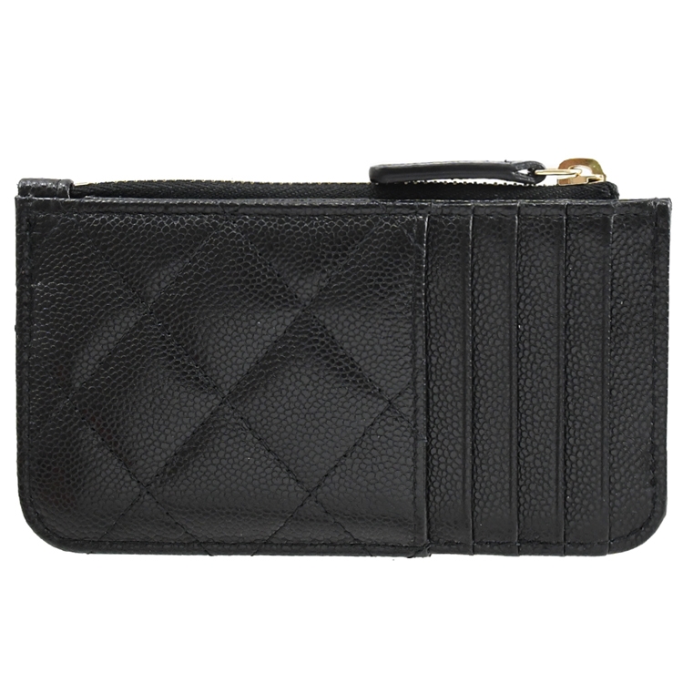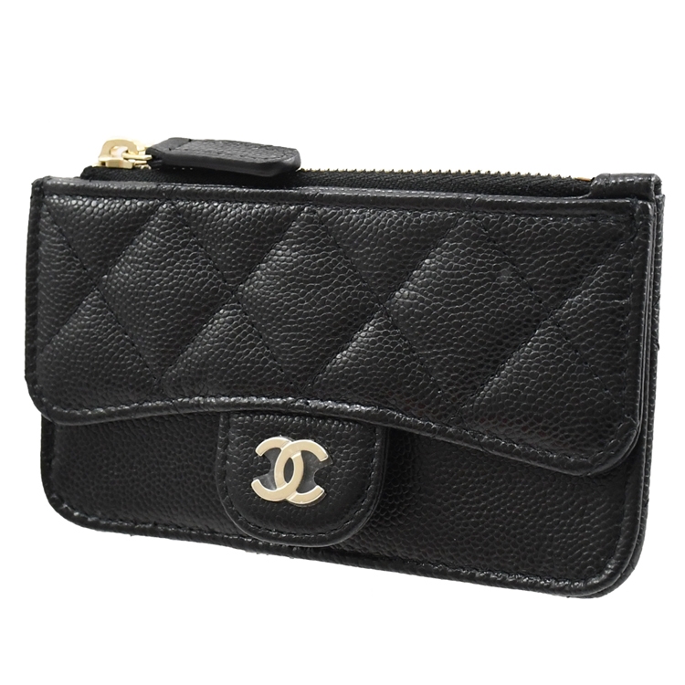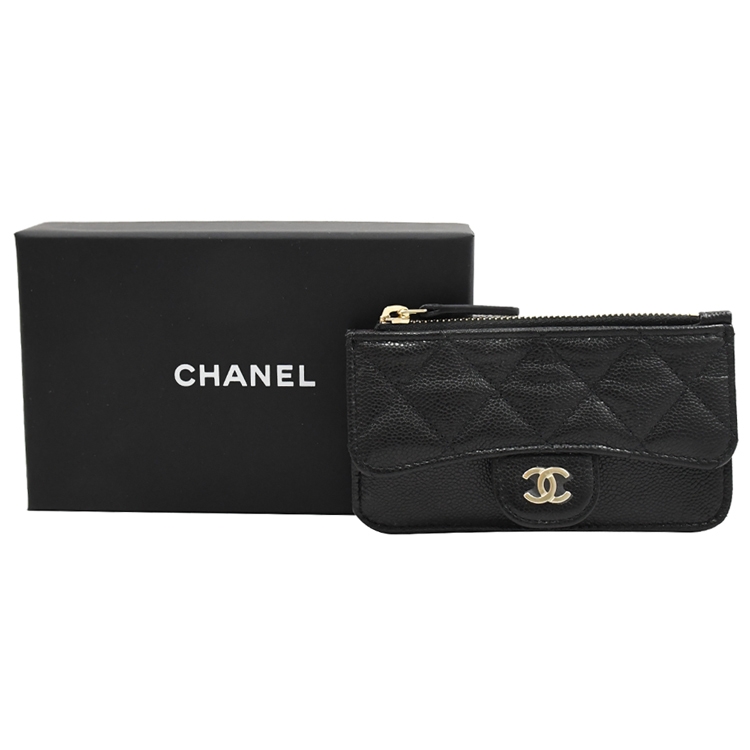 CHANEL 專櫃熱銷經典款卡片零錢包,金屬雙C LOGO加上菱格紋的設計,質感荔枝牛皮材質,拉鍊開口/外5卡片夾層+1翻蓋壓扣貼層供收納,展現出女性魅力,延續貴族品味的氣息。