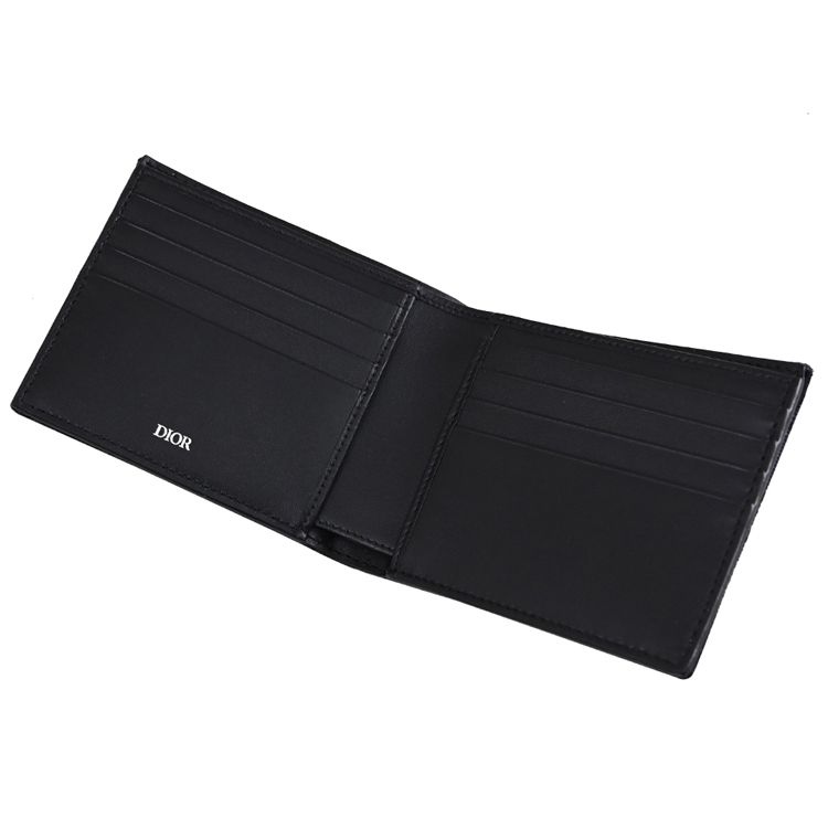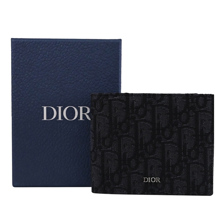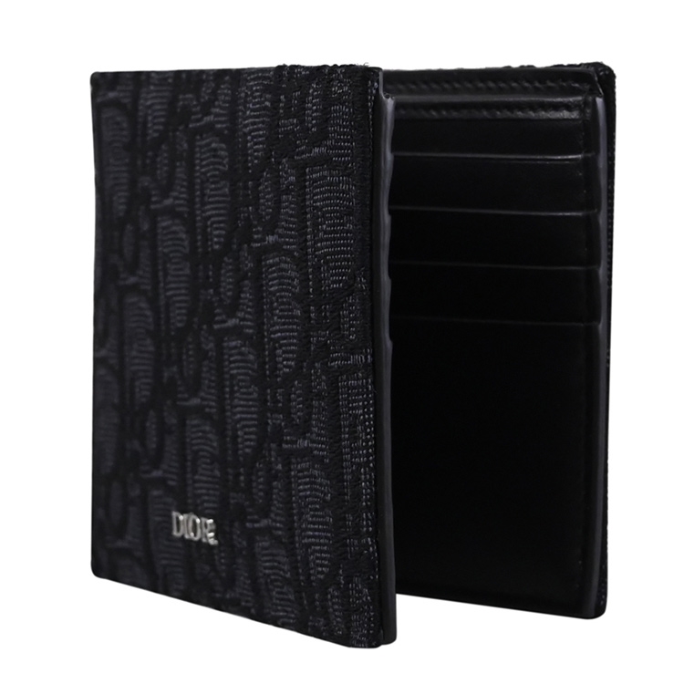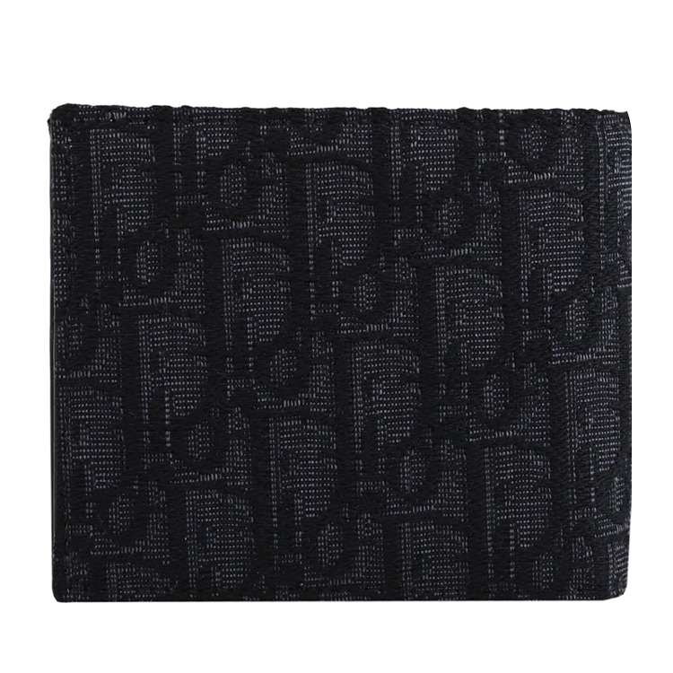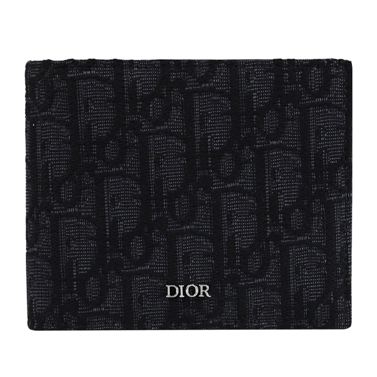 Dior專櫃經典短夾系列,採用黑色Oblique緹花帆布製成,光滑小牛皮內裡,內有2鈔票夾+8卡片夾層+2貼袋,精緻時尚,散發名牌魅力,簡約中又帶都會時尚感,精品配件讓時尚氛圍隨處可見。
