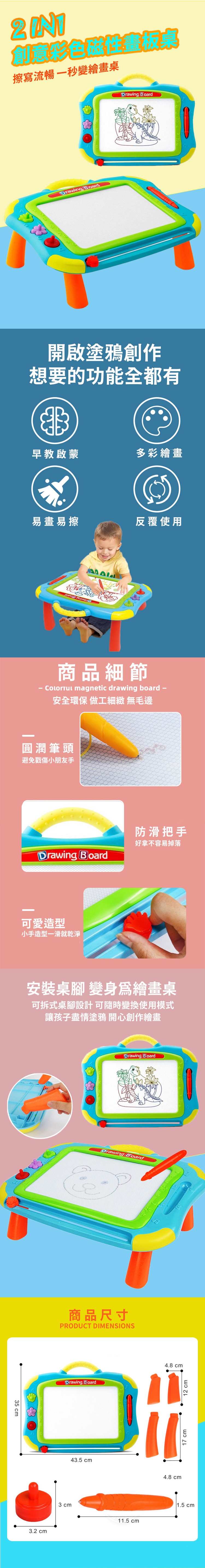 【商品名稱】: 2合1 創意彩色磁性畫板桌