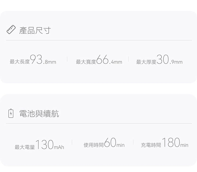 充電說明:充滿電約需3小時,可連續使用約60分鐘。