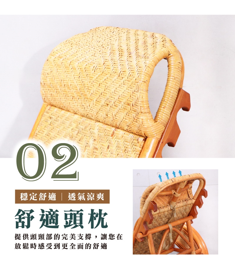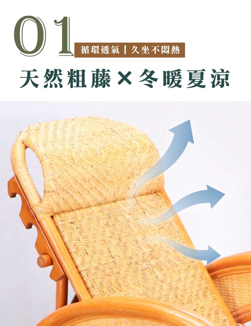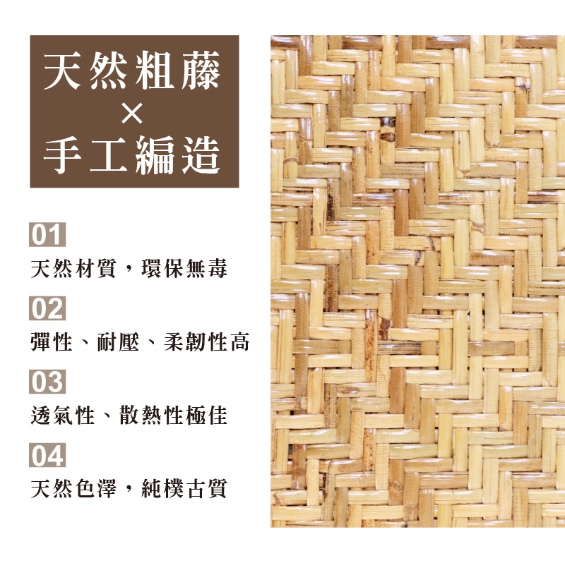 嚴選天然粗藤手工編織而成,具備極佳的透氣性與溫度調節功能。