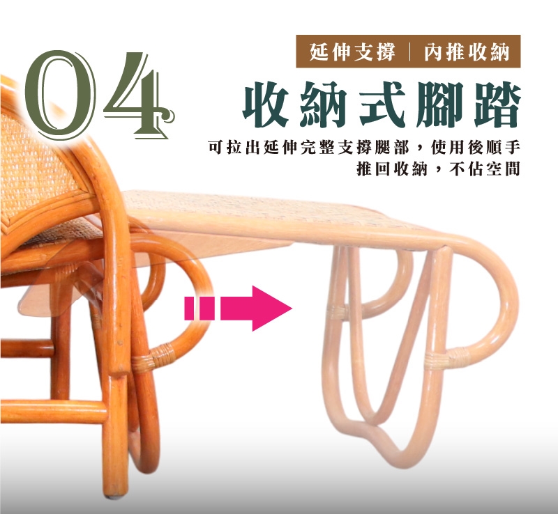 可拉出延伸支撐腿部,使用後順手推回收納,不占空間。