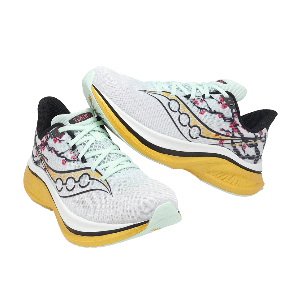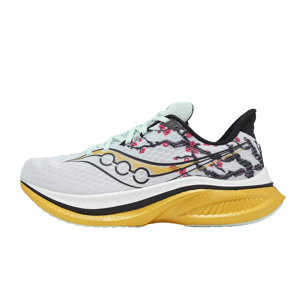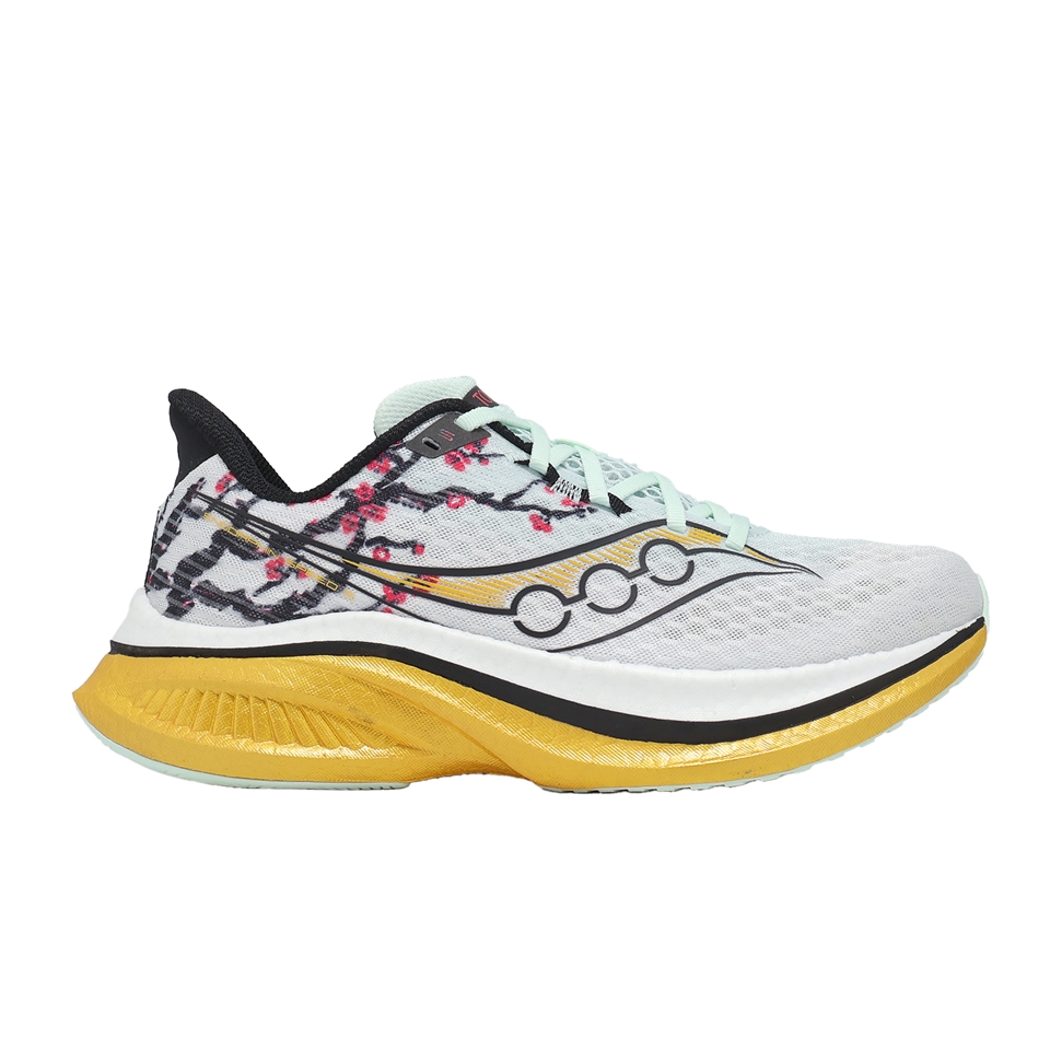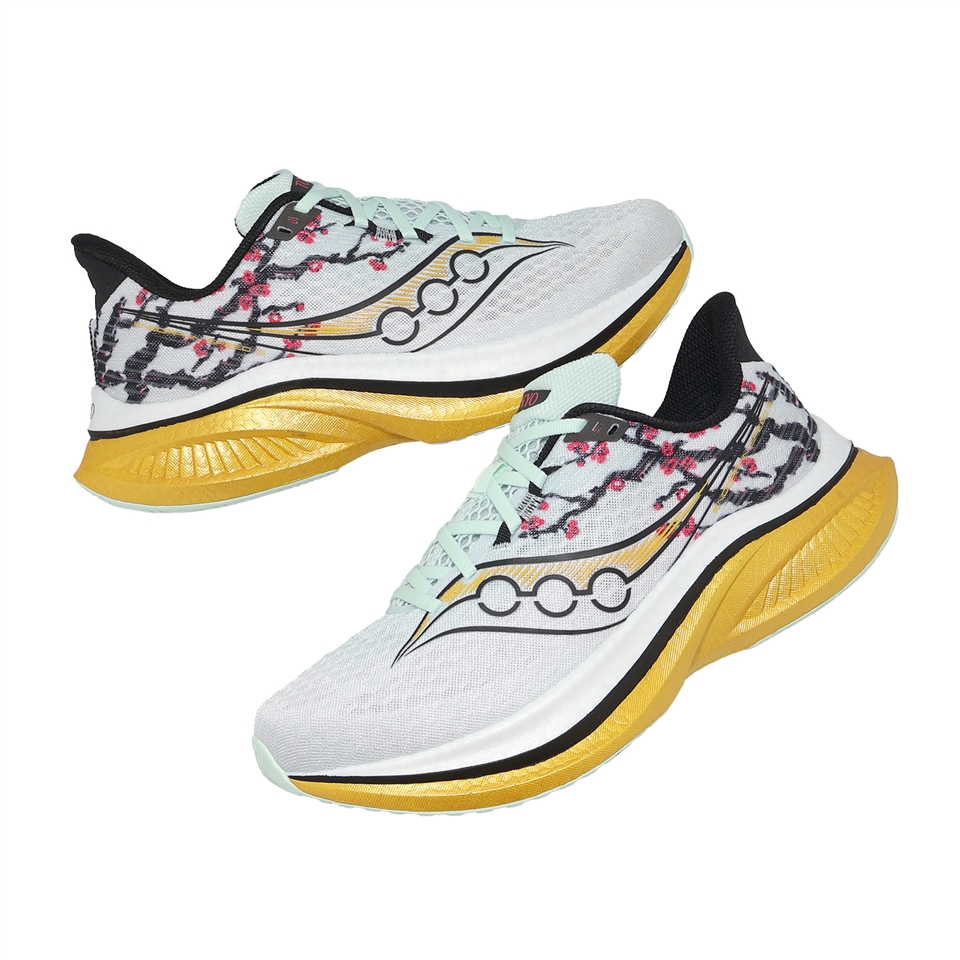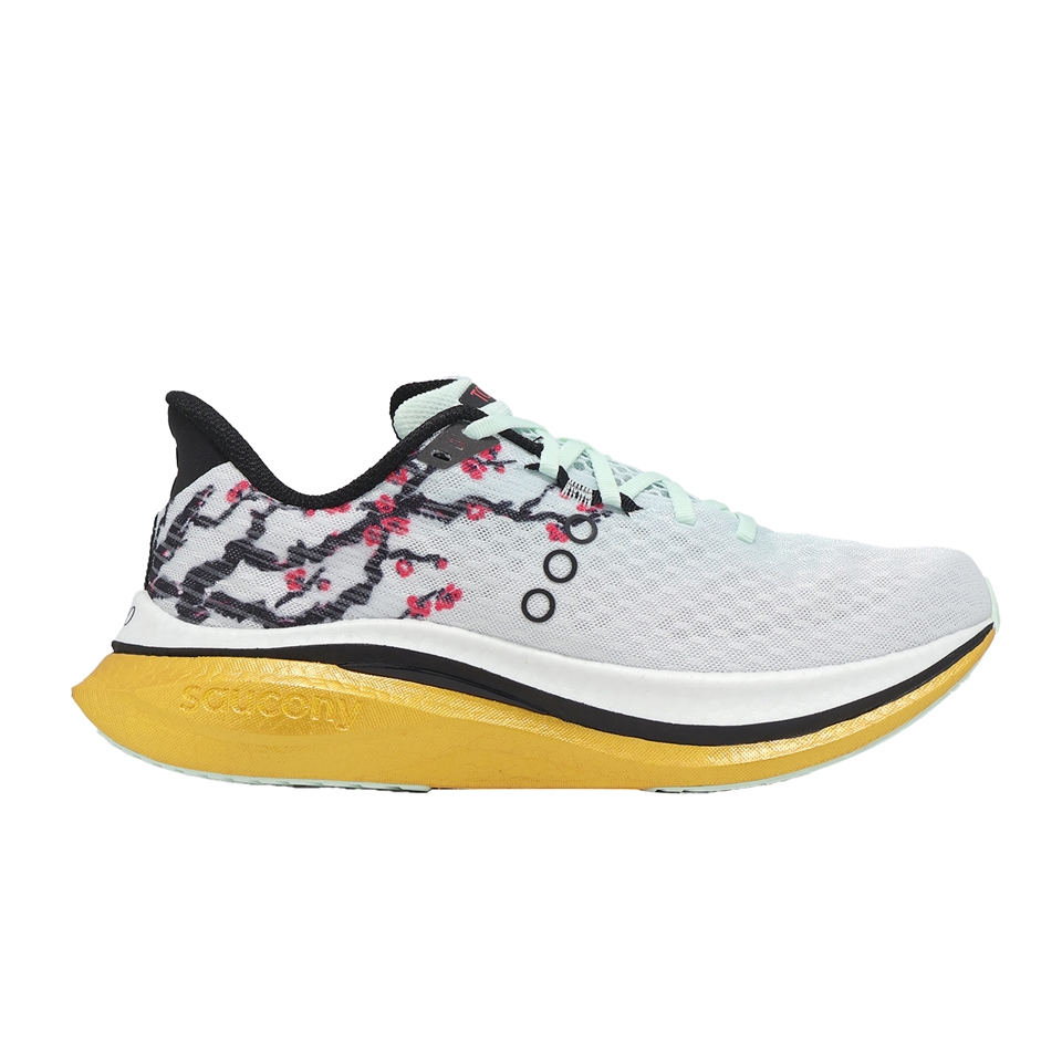 * 以代表日本的櫻花圖騰點綴鞋身,金色中底線條,帶著屬於跑者的自信光芒。