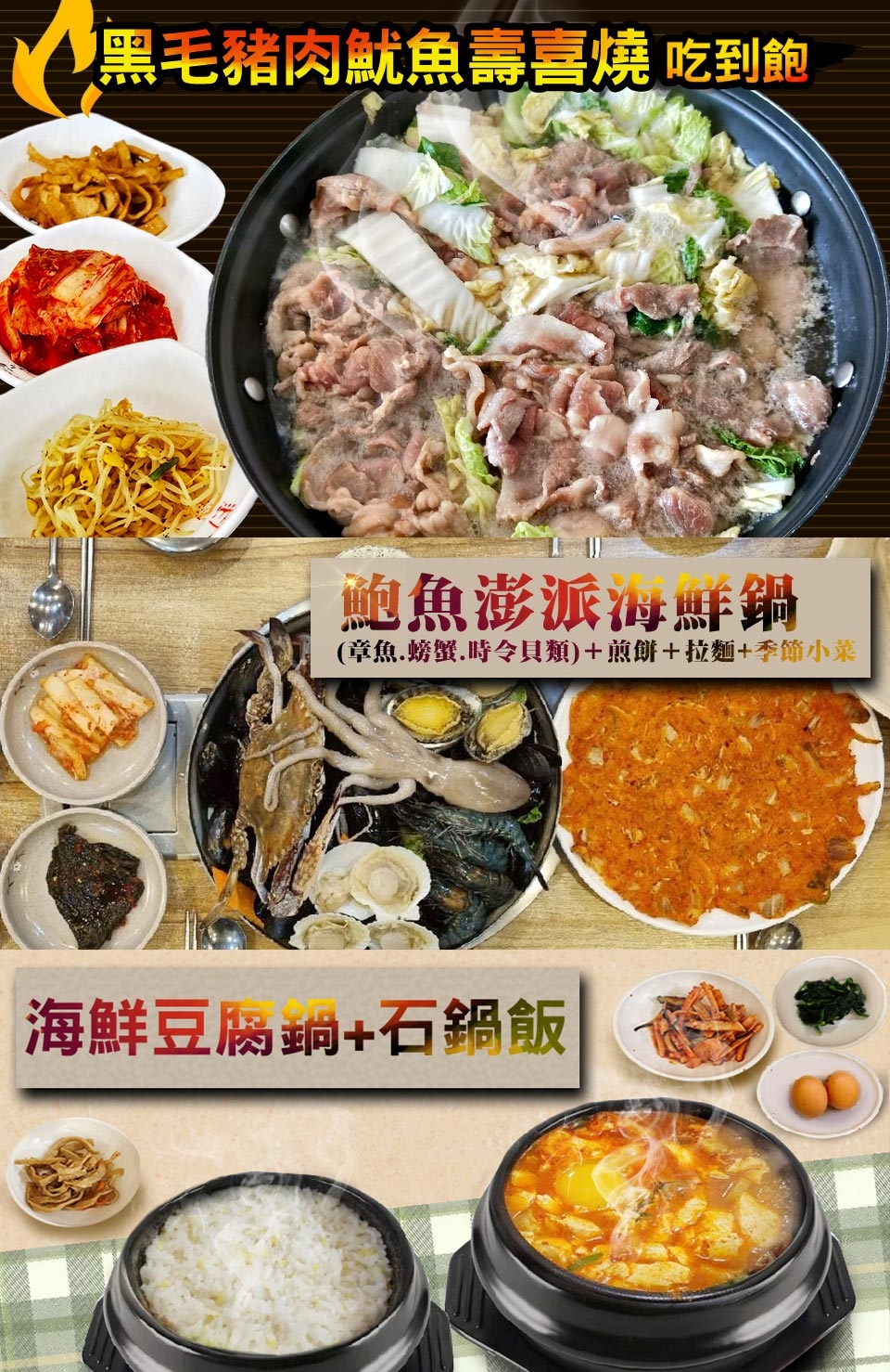 早餐:內用早餐 午餐:黑毛豬肉魷魚壽喜燒+小菜吃到飽 晚餐:方便逛街敬請自理 |