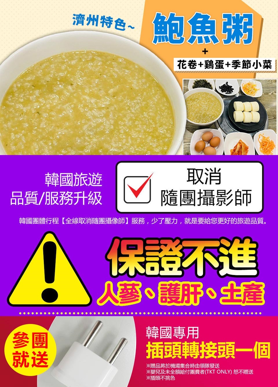 ※觀光旅遊團不接受跑單幫客、韓國華僑、旅遊期間脫隊,若有以上情形皆另加收費用NT$8500元。