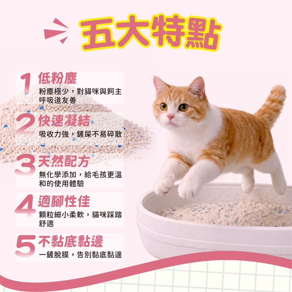 5. 食品級木薯與玉米澱粉,天然成分低粉塵,呵護毛孩呼吸道,誤食亦能相對安心