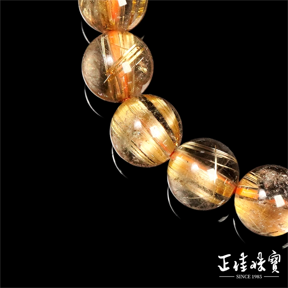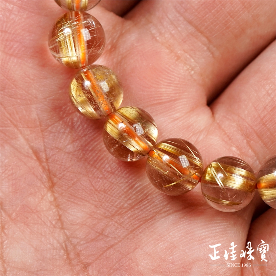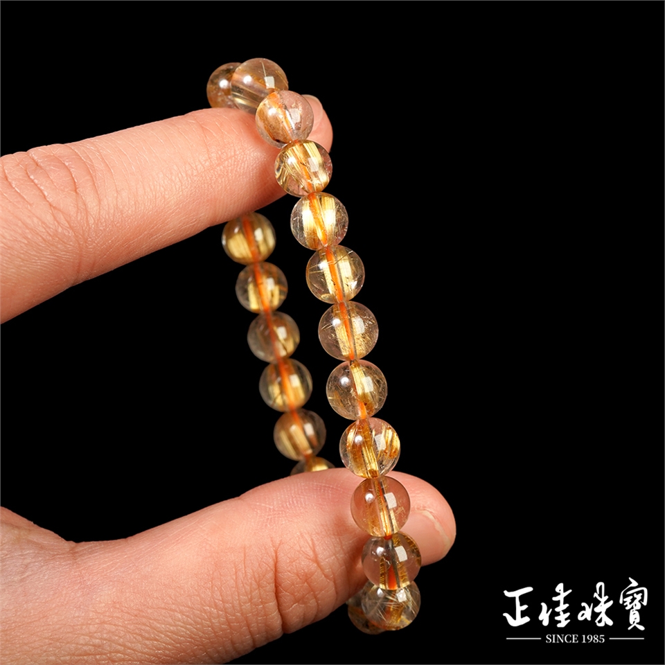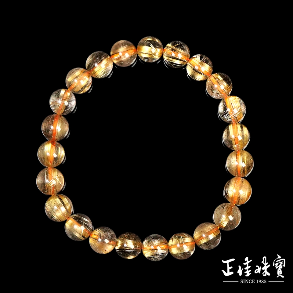 主角:金鈦晶 頂級淨體老礦 厚板順絲 7.8-8.3mm 金鈦晶手珠
